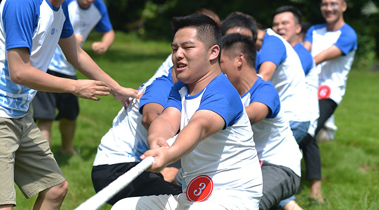 随着全体成员慷慨激昂的呐喊,随着缤纷绚丽的气球四处飘散,周年庆的拓展活动正式展开。
